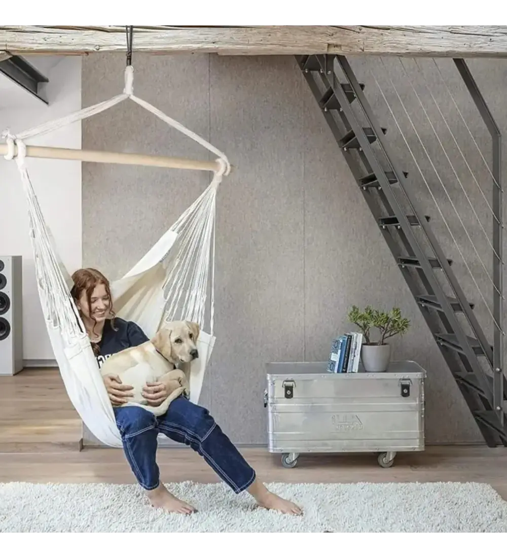 Relájese en la terraza con este lujoso sillón colgante tipo hamaca.